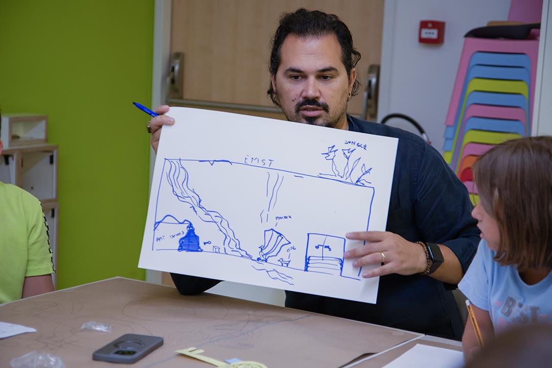 A unique four-day educational workshop for children aged 8–10 with artist Driant Zeneli, blending myth, robotics, and imagination was realized from September 2nd until the 5th. Animals, machines, and humans come together, drawing inspiration from Hera’s peacock, a sacred, watchful, and dazzling bird. By building two robotic creatures, a peacock and a dog, the children created a fantastical kingdom where art, science, and fiction merged into a collective artwork.