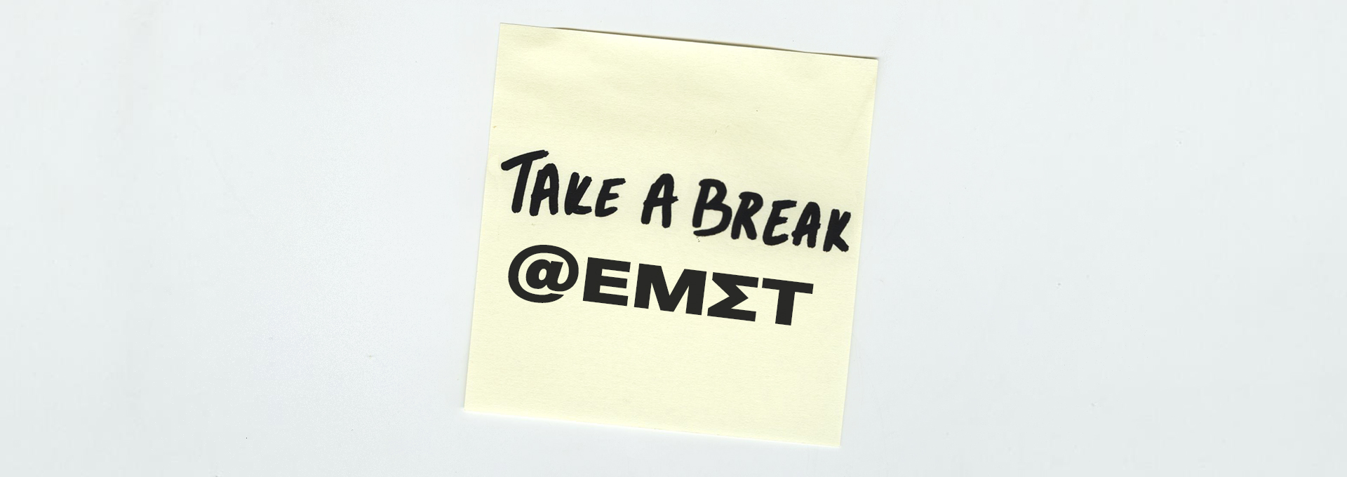 Το Take a break @ΕΜΣΤ απευθύνεται σε εταιρείες και οργανισμούς που αναζητούν για το ανθρώπινο δυναμικό τους μια δημιουργική απόδραση από τη ρουτίνα και μια εμπειρία που συνδυάζει χαλάρωση, μάθηση και κοινωνική αλληλεπίδραση. Δεν απαιτείται προηγούμενη εξοικείωση με την τέχνη παρά μόνο η διάθεση να ανακαλύψει κανείς έναν διαφορετικό τρόπο θέασης του κόσμου.