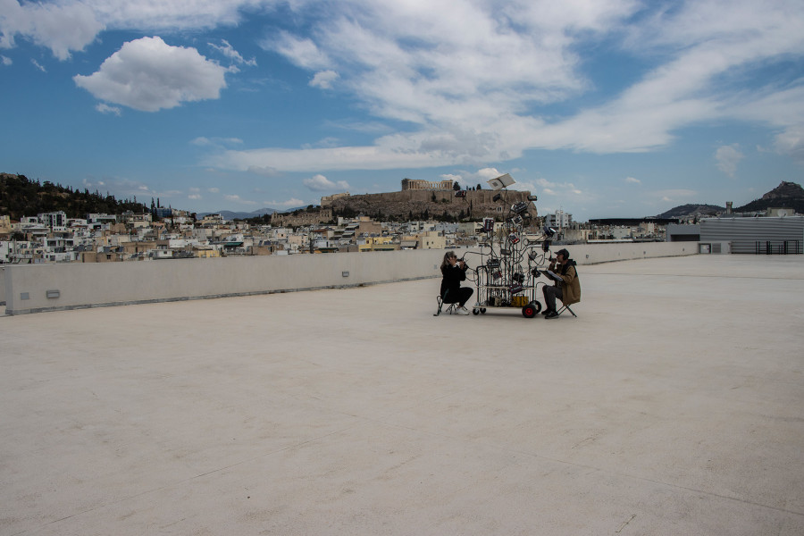 Στο ψηλότερο σημείο του ΕΜΣΤ βρίσκεται η ταράτσα με θέα 360ο στον λόφο της Ακρόπολης, τον λόφο του Λυκαβηττού, τον Υμηττό και τη θάλασσα του Σαρωνικού.